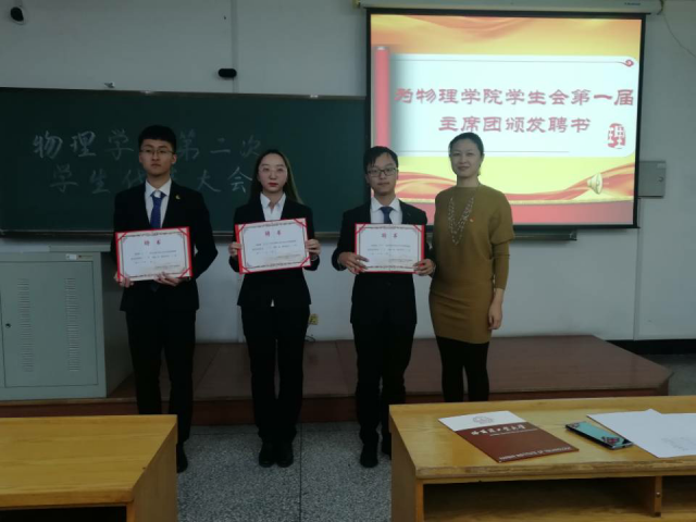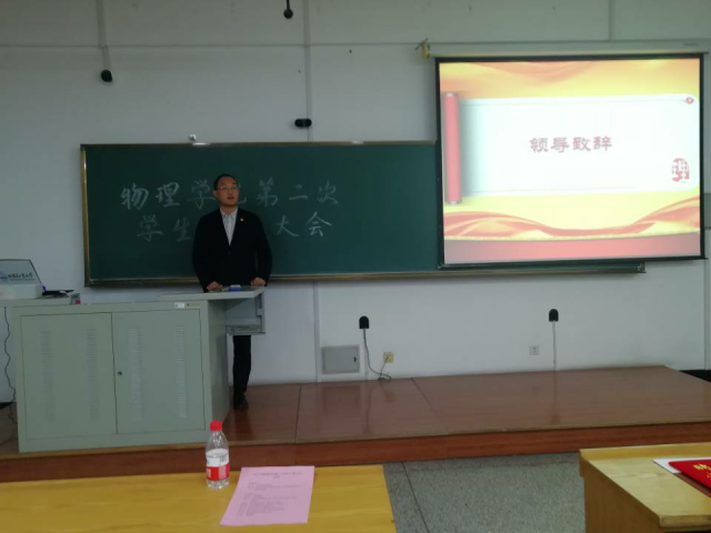 大会末尾,物理学院团委书记宗剑老师对在场的学生代表提出了两点希望,希望同学们在学有余力时积极参加到学生工作中来,并且希望各位学生代表在平时生活里多多留心,在来年的学代会中提出更多与同学们密切相关、亟待解决的提案。物理学院党委副书记赵异肖老师结合党政时事向同学们提出了三点期望,希望同学们向“想干事”、“能干事”、“干成事”的标准看齐,在大学中磨砺自己的才干,努力成为一个优秀人才。