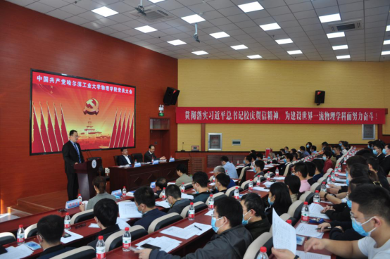 校党委常务副书记安实在讲话中肯定了物理学院取得的成绩,学院党委全面加强党的建设,紧紧围绕立德树人根本任务,各项工作取得新进步,学院特色进一步彰显。同时,安书记提出工作要求,物理学院应把学习宣传贯彻落实好习近平总书记贺信精神作为首要政治任务,坚持已有的教学特色、学科优势,进一步明晰发展方向、强化发展优势。切实加强领导班子建设,不断夯实基层党组织建设。希望物理学院在学校新百年发展进程中贡献新力量。