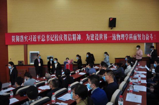 院党委书记程东明同志作了题为《践行使命、强化特色、开拓创新,全力推进物理学院建设步伐》的党委工作报告,全面回顾总结了学院党委围绕思想建设、制度建设、组织建设、疫情防控、主题教育等方面开展的工作,以及学院过去在学科建设、师资队伍、教学工作、科学研究、人才培养、国际合作等方面取得的成绩,实事求是地指出了差距和不足,分析了学院面临的机遇和挑战。学院党委提出了下一个五年的工作任务,深入推进学院各项工作,全面落实新时代党的建设总要求,面向学校新百年和一流学科建设目标而努力奋斗。