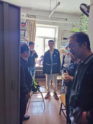 为了解2020级新生寝室状态和生活情况,提高学生防疫安全意识和卫生意识,9月12日上午,物理学院党委书记程东明、副院长张宇、副院长隋郁、党委副书记赵异肖及大一辅导员白雪,深入B05公寓亲切看望2020级本科生。