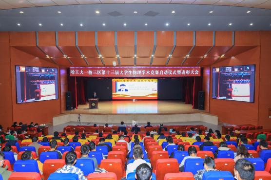 2023年11月5日下午,哈尔滨工业大学第十三届大学生物理学术竞赛启动仪式暨表彰大会以线上线下相结合的方式举行,主会场在一校区活动中心301。哈工大物理学院副院长张宇,党委副书记陶海亮,教授王玉晓、吕喆、侯春风,副教授黄丽,威海校区理学院光电科学系主任潘玉寨、系副主任王新顺,深圳校区理学院实验与创新实践教育中心实验室王拴,教授陈书湄,副教授陈晓彬、晏飞翔,助理教授陆敬予及相关学院2022级、2023级本科生参加本次会议。会议由物理学院学生会主席高一丹、学习部副部长吴瑶主持。