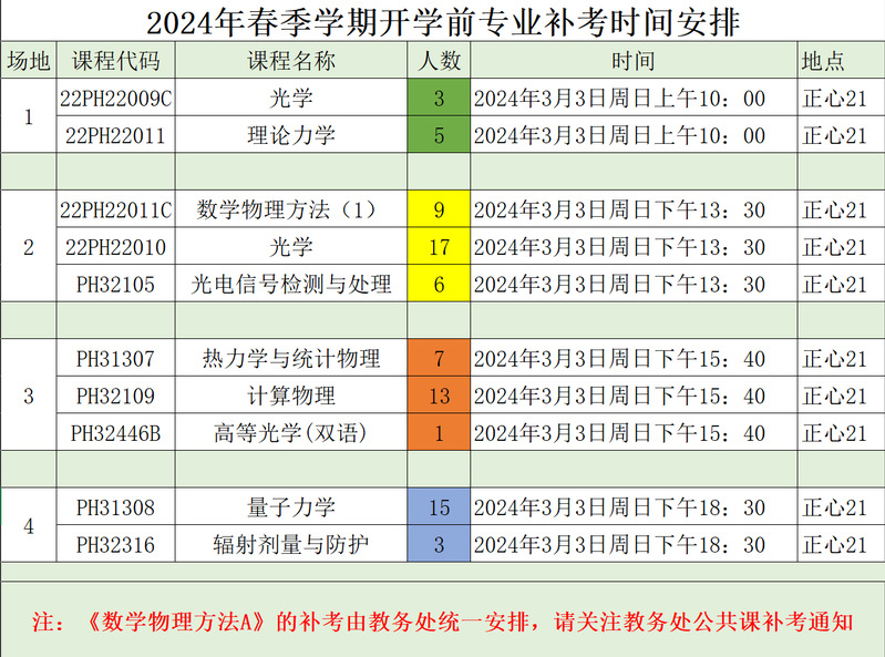2024年春季学期开学前本科(专业课)补考、缓考时间安排