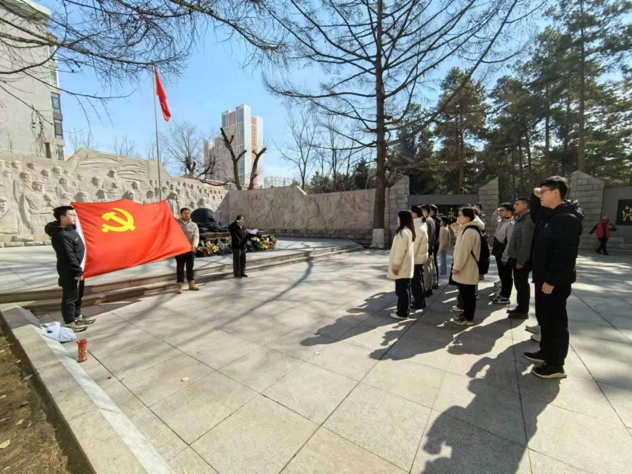 随后,学生党员们来到哈尔滨烈士陵园,革命烈士纪念碑前进行清明祭扫活动。同学们手持黄白菊花,低头静立,向为中国的民族解放和人民革命事业英勇献身的革命先烈默哀。随后,学生党员们依次向革命烈士纪念碑敬献鲜花。接着学生党员们在烈士纪念碑前重温入党誓词