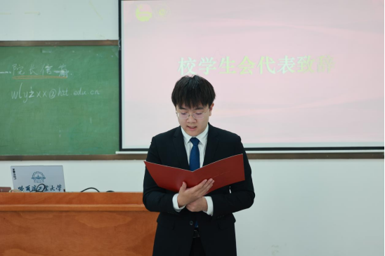 校学生会主席团成员李品谋宣读贺词