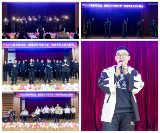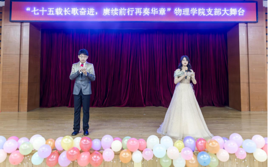 为庆祝中华人民共和国成立75周年,引导青年学子主动承担新时代赋予的使命,展现物理学子朝气蓬勃、积极向上的精神面貌,加强团支部凝聚力、集体荣誉感,2024年10月27日晚,物理学院“七十五载长歌奋进,赓续前行再奏华章”支部大舞台于活动中心101顺利举办。学院2022级本科生高璟泽、吴瑶主持活动。