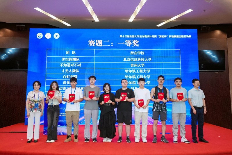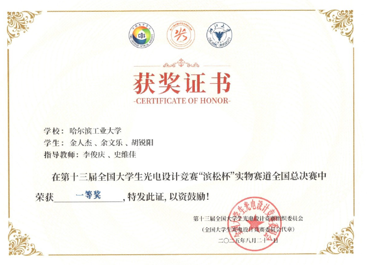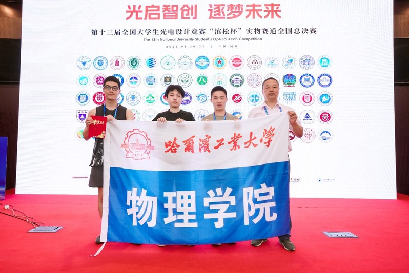 8月22日,在杭州举办的第十三届全国大学生光电设计竞赛“滨松杯”实物赛道全国总决赛中,物理学院“追光逐电”队成员金人杰、余文乐、胡锐阳在第二赛题中获得一等奖。该队为一校三区所有参赛队伍中唯一获得该奖项的队伍。物理学院李俊庆教授作为第一指导教师、仪器学院史维佳教授作为第二指导教师,二人均被评为全国优秀指导教师。