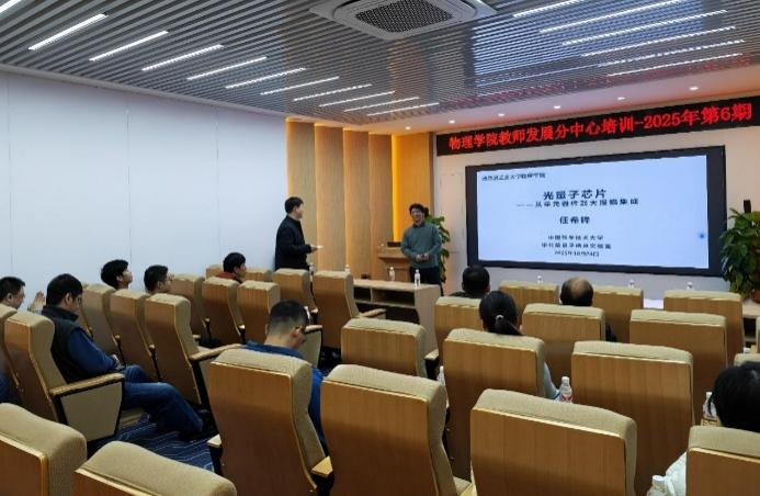 10月24日,中国科学技术大学任希锋教授主讲“光量子芯片—从单元器件到大规模集成”研讨培训,介绍集成光量子芯片的优势与三大前沿研究方向,分享将科研前沿融入课堂的实践经验,为相关课程建设注入创新活力。与会教师表示将积极吸收报告精华,推动课程内容与学科发展同步更新。学院将持续组织高水平教学研讨活动,助力教师提升教学创新能力。一系列培训活动涵盖教学改革、技术赋能、学科前沿与人才培养等核心议题,为全院教师提供了丰富的创新思路与实践经验。物理学院将持续推进教师专业成长,以高质量教学赋能新时代物理学领军人才培育。
